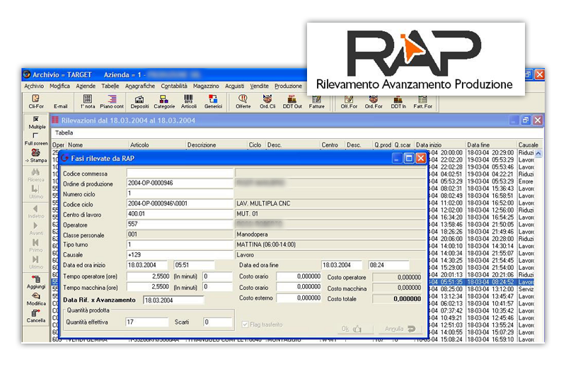Ciò consente, a differenza di prodotti similari, una facilità e semplicità di utilizzo, anche per gli operatori meno esperti, soprattutto evita gli sgradevoli e a volte complicati import/export fra il gestionale e il sistema di rilevazione dei dati di produzione.